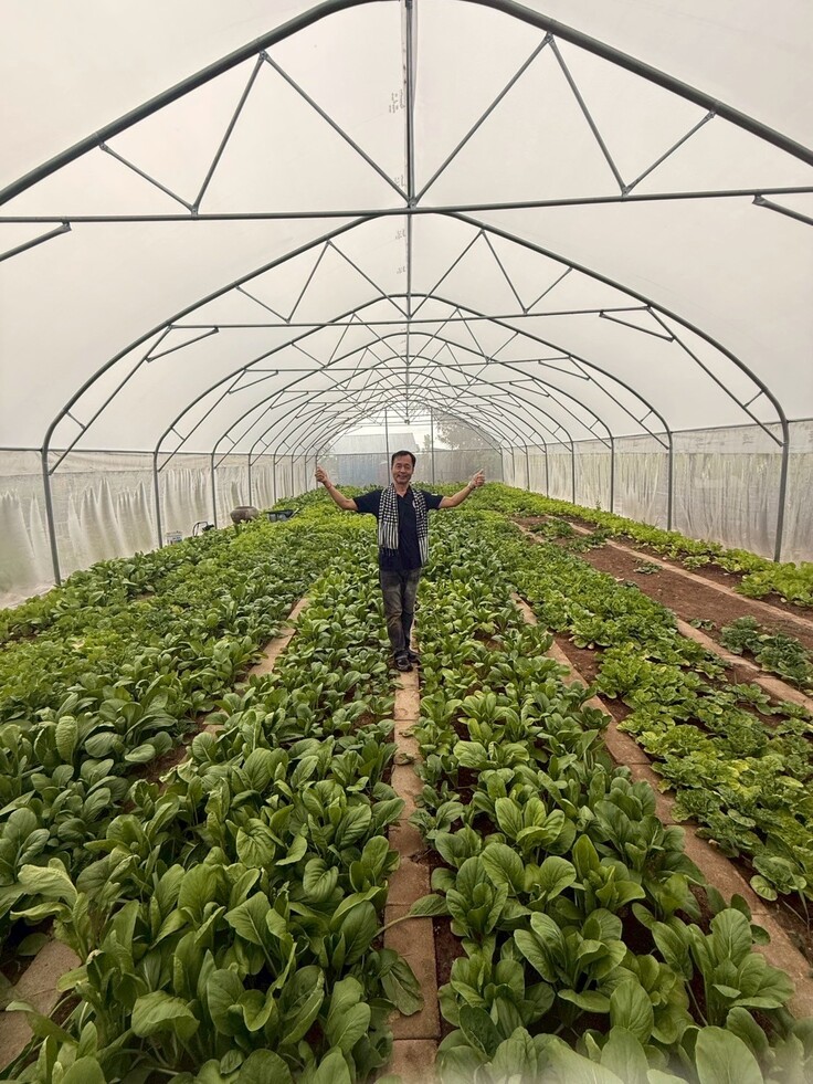 先日、園長のファールさんが、私に大きな袋に野菜を詰め込んで持たせてくれましたが、すべて有機無農薬で作られた葉野菜はまったくの自然の味でした。露地栽培と違って、ハウス栽培では、動物や昆虫の糞尿がつくことがなく、回虫がついている心配もありません。