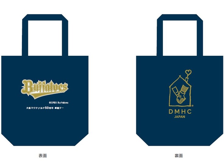 本プロジェクトに5,000円以上ご支援いただいた皆さまには、オリックス・バファローズ×DMHCオリジナルトートバッグを御礼品としてご郵送にてお送りいたします。