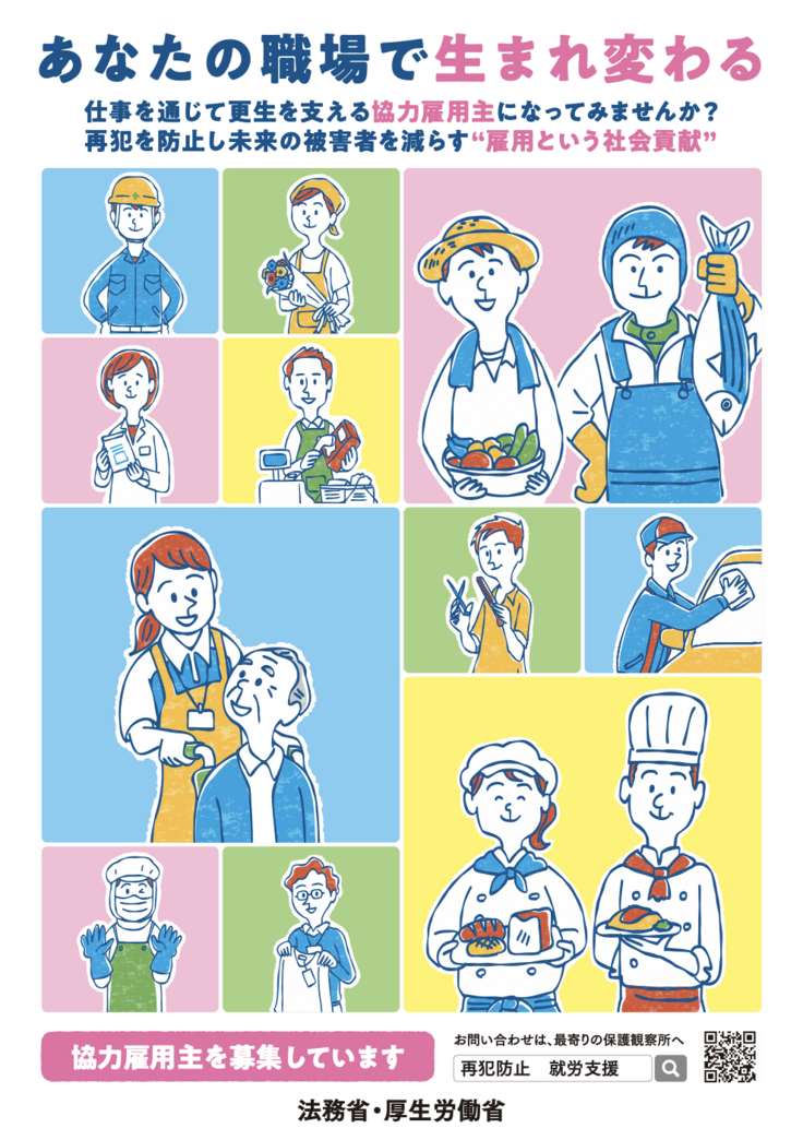 協力雇用主制度は、出所者に仕事や居場所を提供することにより、再犯を防ぎ、地域社会の安全を維持することにもつながる国の制度です。