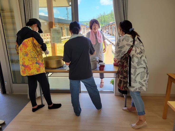 そして、炊き出しの配膳も行いました。仮設住宅の集会所でカレーライスを住民の方々に配りました。