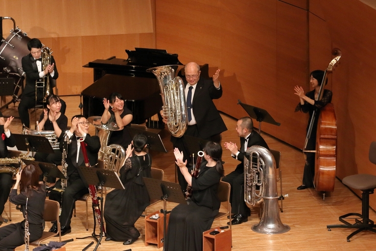 そして演奏会が終わり、奏者がはけようとした時にも拍手は鳴り止まず、指揮の松尾共哲が「もうネタがありません」と言うと会場から笑いと拍手が起こり、惜しまれつつ演奏会は幕を閉じました。