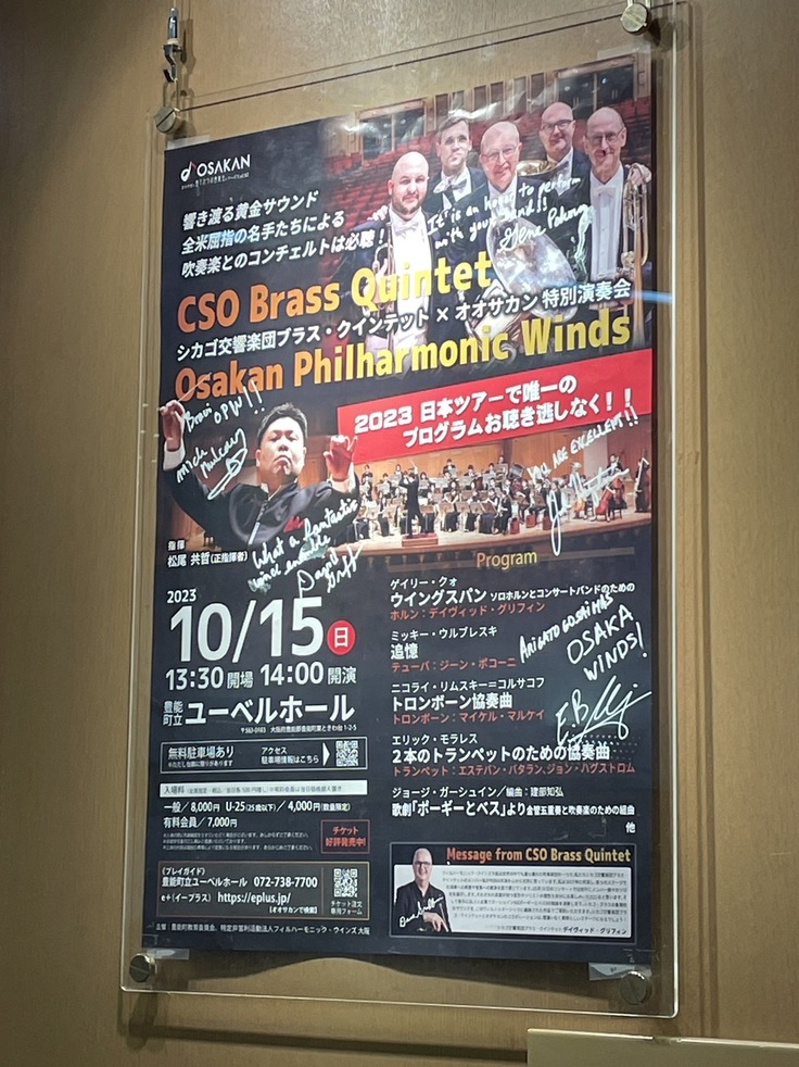 10月15日、豊能町立ユーベルホールにて「昼下がりの音楽会シリーズ Vol.97 シカゴ交響楽団ブラス・クインテット×オオサカン 特別演奏会」を開催しました。