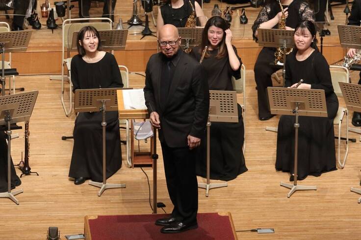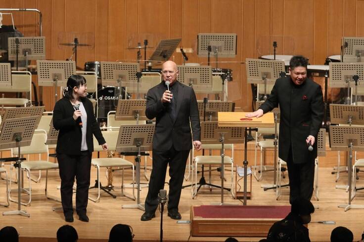 そして、締めくくりはなんとアレッシ氏が『ハンティンドン・セレブレーション』を指揮!実は氏の提案でこの企画が実現、祝祭的な音楽も相まって、観客の笑顔に包まれながら盛大に演奏会を終えました。