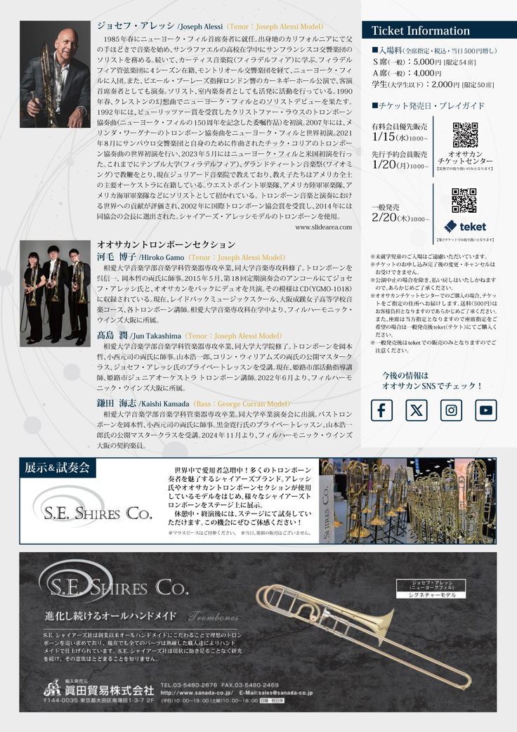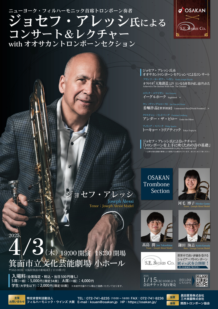 お知らせしておりました「ジョセフ・アレッシ氏によるコンサート&レクチャー with オオサカントロンボーンセクション」のチラシが完成いたしました。