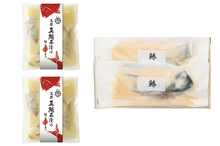 ●天然真鯛茶漬けと、岡山県が日本でもトップクラスの取扱高を誇るサワラを活用した味噌漬けのセットです。ご自宅の食卓で、ご夫婦で、お子様と、お楽しみいただけるようなセットに仕上げました。