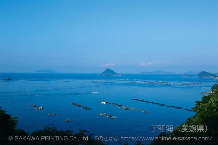 愛媛県は、北は瀬戸内海、西は宇和海という2つの特徴的な海に囲まれています。瀬戸内海は、穏やかな波と多島美を有しながら、潮の流れの速い海峡を形成し、さまざまな魚の漁場です。宇和海は、太平洋から黒潮が流れ込む暖かな海で栄養豊富な漁場です。リアス式海岸を生かした鯛や真珠の養殖がさかんです。海に囲まれた我が県は、水産王国。愛媛県の鯛生産量は日本一を誇ります。