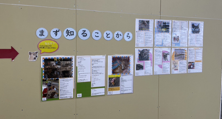 譲渡会だけではなく、クラファン真っ只中の1/20からジャンボスクエア内の、1階フロアの空き店舗スペースを丸丸お借りして、大阪の野犬なくし隊の啓発展示をさせていただいています。