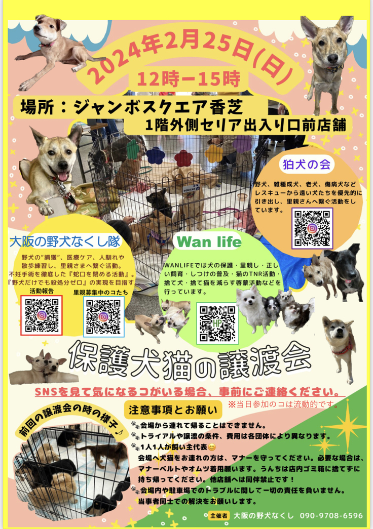 2/25(日) 奈良県香芝市「ジャンボスクエア香芝」にて譲渡会🐕現在、啓発展示してます!