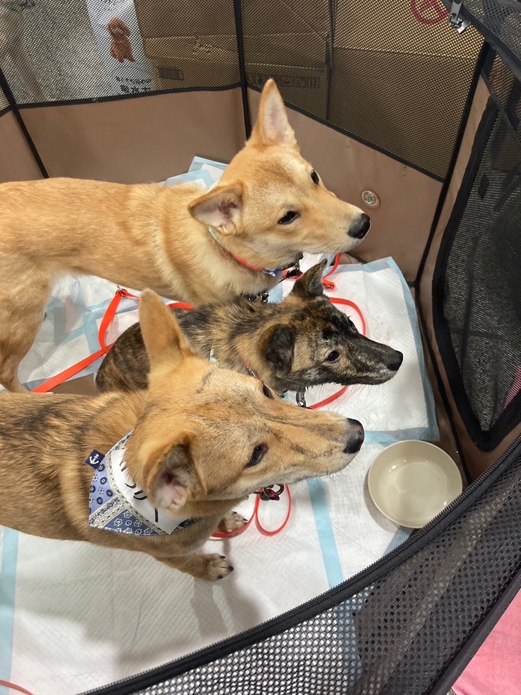 テーブルや旗を立てる棒や土台などの備品の貸し出しまでご協力いただき、譲渡会の日は、保護犬を運ぶクレートやサークル、チャリティーグッズ、ペットシートなどだけでもう車内がぱんぱんになるため、会場で備品までお借りでき、ものすごく助かってます🙇♂️