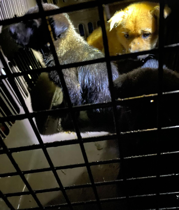子犬3匹がトラップに同時に入ったタイミングで、扉をおとして無事保護。