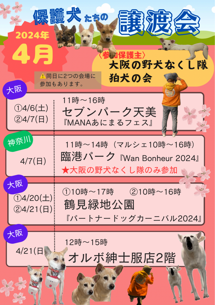 2024年3月、4月の譲渡会情報です!ぜひ、会いに来てください^ ^