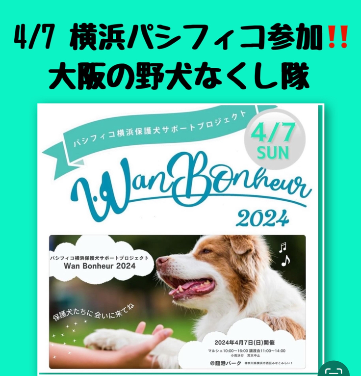※ 大阪の野犬なくし隊ブースで狛犬の会のコたちも参加します。