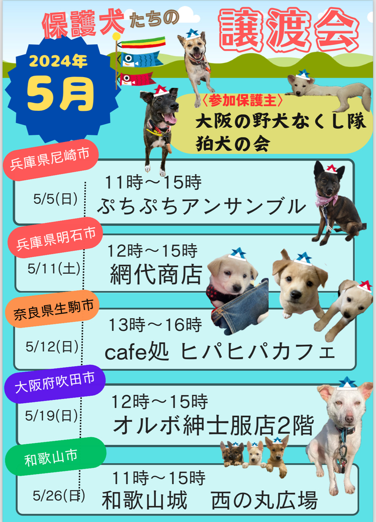 気になるコ、会ってみたいコがいらっしゃる場合には、参加犬の調整ができますで、事前に保護活動者まで直接DMでお問合せください。