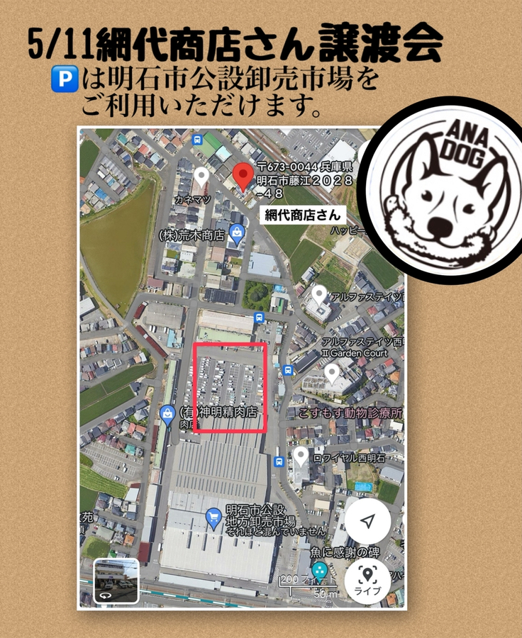🅿️すぐ近くにある、明石市公設卸売市場の駐車場をご利用いただけます。