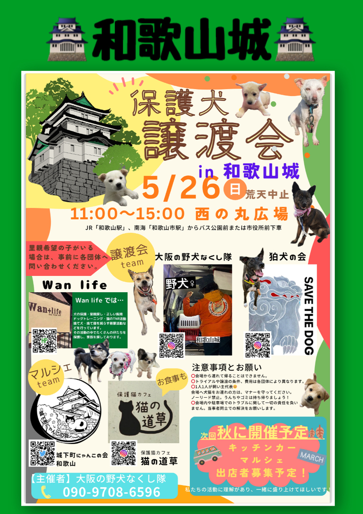 地元や近隣の皆さまにも知っていただき、和歌山の野犬のこと、一緒に考えていけたら、もっと変えられることがあると思います‼︎