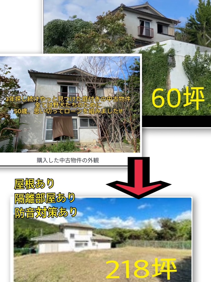 外壁修繕、屋根修繕、一階修繕、ドッグラン設置、一階内装、防音対策、冷暖房設置、元シェルターの内装はすべてカバーできる状態となります。