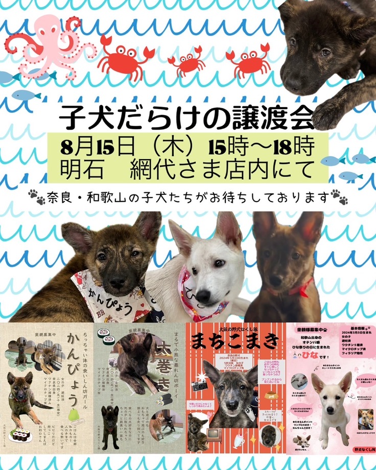 お知らせ📢 明日、明石市 網代商店さんで~子犬だらけの譲渡会~開催🐣