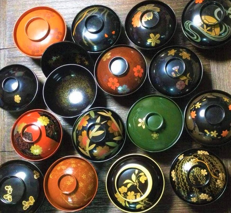 こういった古くからのお椀に施された蒔絵を一つ一つご紹介し、お使いになる場面や