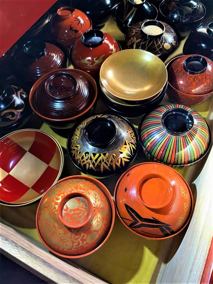ギャラリーの箪笥の中に大事に仕舞って置いた蒔絵の椀の数々。