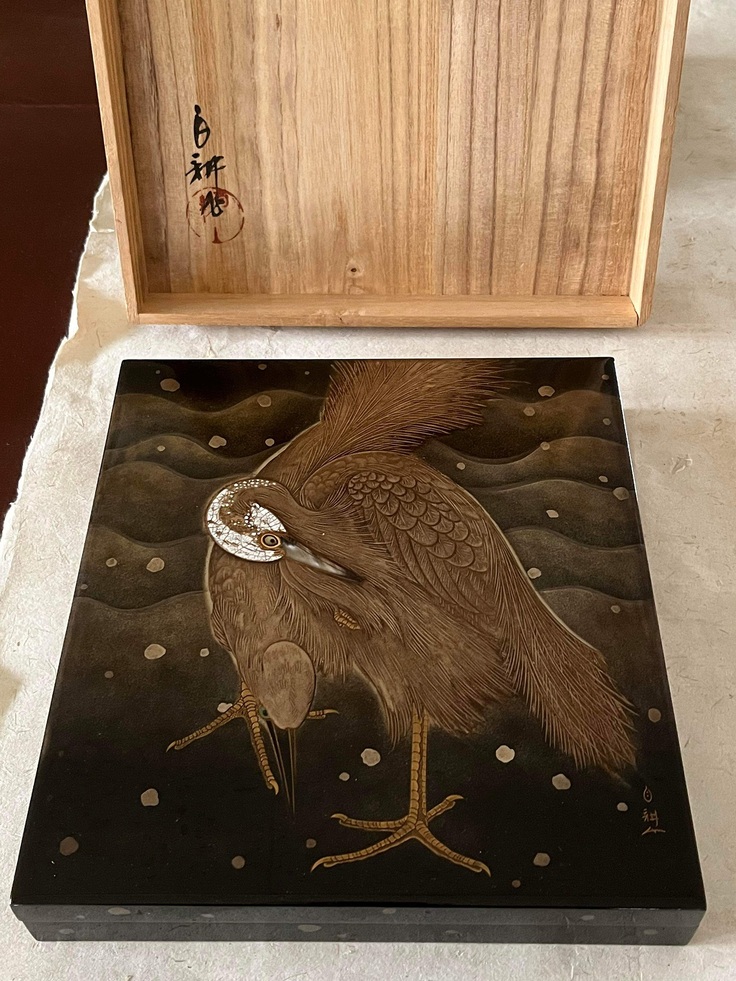 題名は『双鷺蒔絵』とあり、作者は竹園自耕(たけその じこう 1892〜1967)さんです。