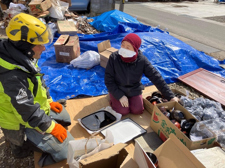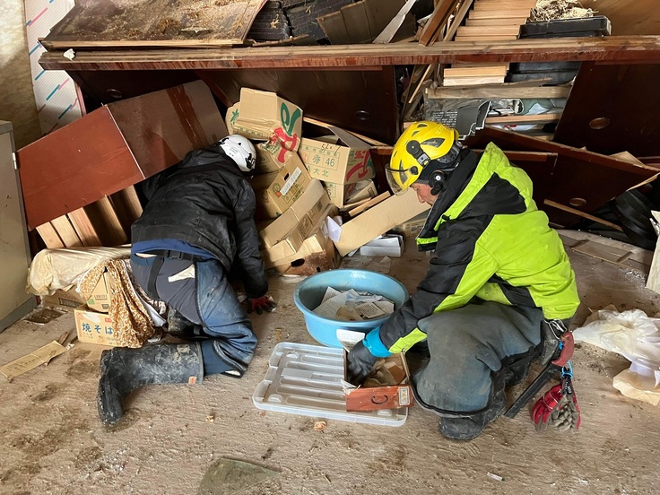 瓦礫の撤去と器の救出作業をして頂いています。