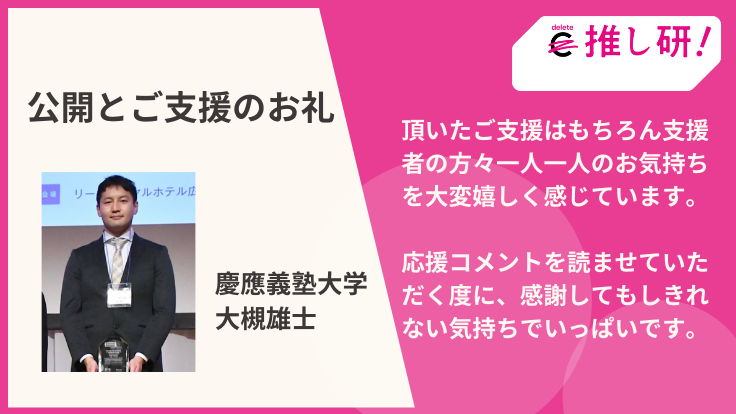 あらためて、deleteC 推し研プロジェクトfeat.大槻雄士 に関心いただきありがとうございます。