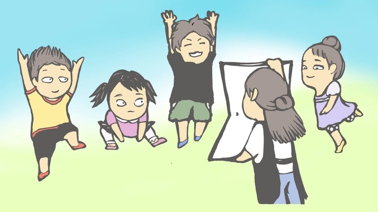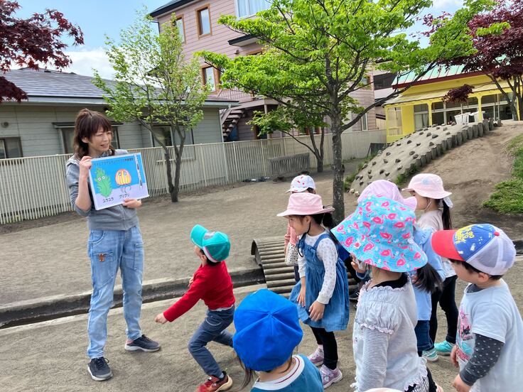 保育園や幼稚園での運動指導に活かしてもらうことを想定し、屋外で大人数でも楽しめる絵本を制作します。