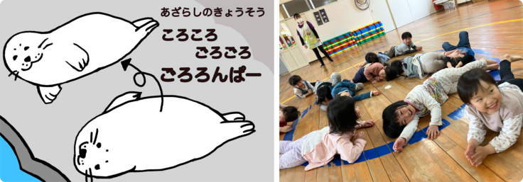 子どもは本来、動くことが大好きなはず。大きな絵本に誘われて、つい身体を動かしていくこの企画は、子どもたちの心をときめかせ、笑顔の花を咲かせることでしょう。