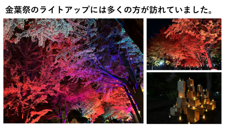 北大にて、10月28-29日の日程で開催された金葉祭には多くの観光客の方が訪れました。夜にはきれいにライトアップされました。