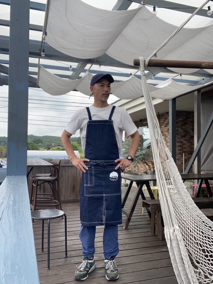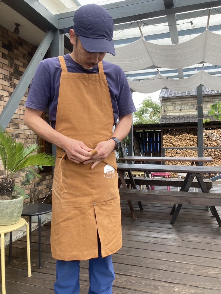 オリジナルエプロン(ダークインディゴ or キャメル)を1枚お送りします!ステッカーもセットです。