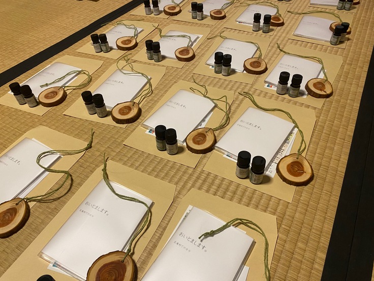 ※余談ですが。。。つい先日長野県林業総合センターの方が、県内の精油事業者やアロマセラピストの方々に召集をかけて、約30名で会議をしました。それぞれの取り組みや、それぞれの立場からの見解、品質管理や県として今後どのように特用林産を盛り上げていくのか、みたいなのを官と民で率直に語り合いとても勉強させていただきました。僕らは精油を売る事が最終目的ではなく、このヒノキの葉精油を通じて「王滝村を知っていただきたい」「王滝村はヒノキの村なんだ」「王滝村に来れない時でも村を感じてもらいたい」「ストレス社会の中で自然の香りを感じて癒されて欲しい」このような想いで事業化を目指しています。