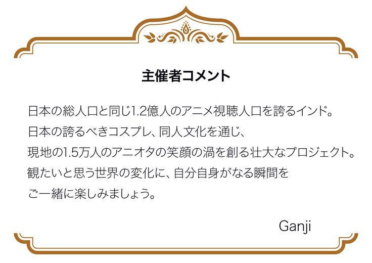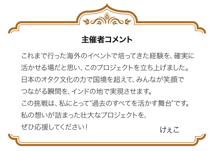 このイベントが、単なる開催に留まらず、インドのファン文化を前進させる記念碑的な一歩となるよう、皆さまのご協力を心よりお願い申し上げます。