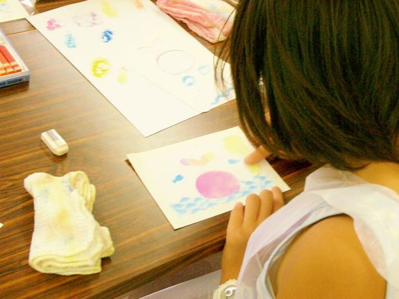 (指でぬるパステルアートは、温かく優しい色合いで心を癒します。)