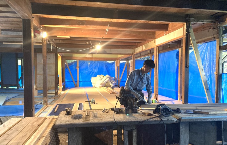現在は宿開業に向け築百年の古民家を改修中。