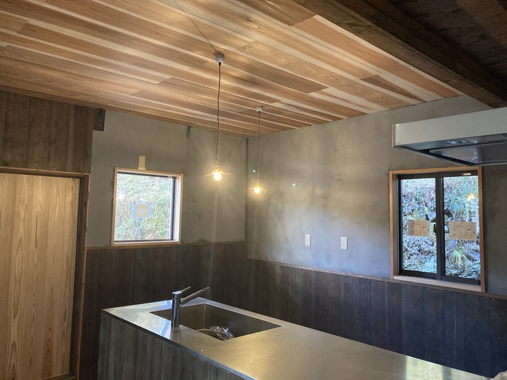 宿の外装・内装は出来るかぎり自分たちで改修しています。水周りや電気工事、建物の基礎工事など大事なところは職人さんにお願いし、ハーフセルフビルドでリノベーションしています。
