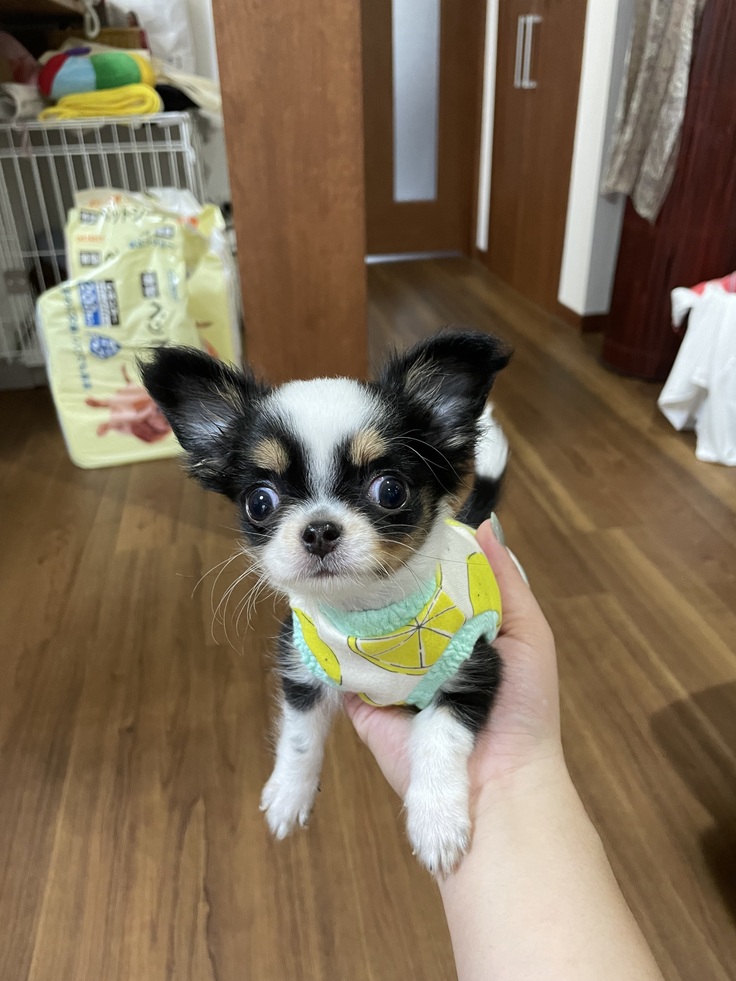 ちょうどその頃、知人を通して生後2ヶ月のチワワの飼い主さんを探している話があり、私は直ぐに会いに行きました。デイサービスに通う子供達と一緒に大きく育ってほしいと思い、セラピー犬としてお迎えする事に決めました。