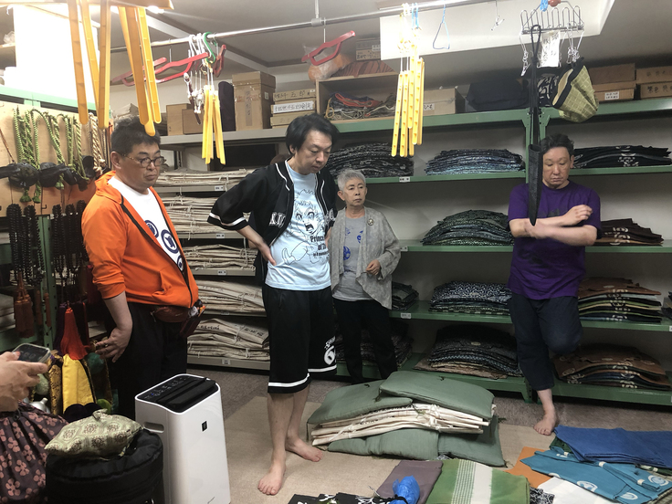 7月22日から本日までの間に、7組19名の方々に千五郎家の稽古場で装束の糊付けと、装束蔵をご覧いただきました。