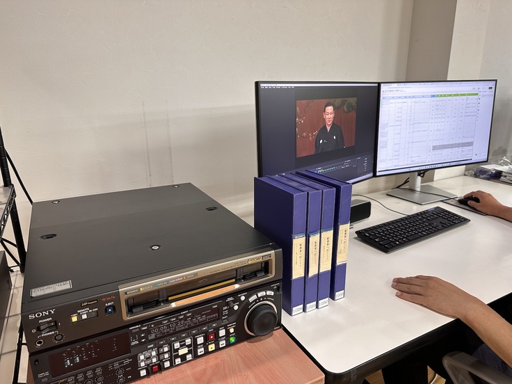 デジタル化した映像は1998年〜2009年にCS京都チャンネル「茂山狂言アワー」にて放映された舞台映像で、「デジタルベータカム」という特殊なテープに保存されており、自分達で再生することもできませんでした。そのため専用の再生機器を使用し、デジタル化を行いました。