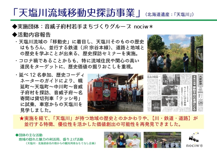 私たちの団体では、北海道遺産協議会で行っている「ほっかいどう遺産WAON寄付金による助成活動」として、9月に実施したセミナー事業を実施、助成をいただきました。