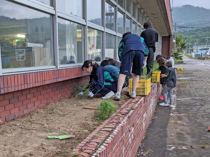 その後は、ここ数年「おまけ」で行っている、村役場さんの花壇にひまわりのタネを撒く作業も、皆さん暗くなるまで行って頂きました!