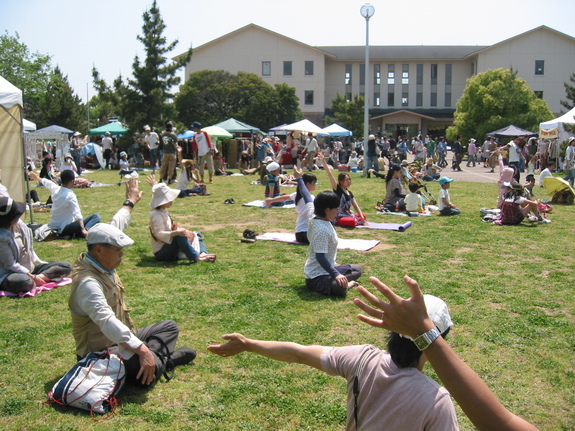 (屋外ステージでは、ヨガのほかキッズダンスや和太鼓が行われる予定。)