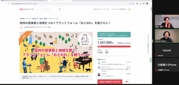 信州おとのわプロジェクトにご支援いただきました皆さまへ