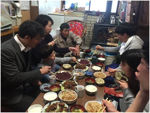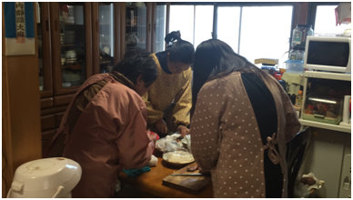 こんな風にお手伝いしながら、八畝地区の方のおうちでお昼ご飯や晩御飯をいただいています。ゴボウのささがきやお肉の切り方まで教えてもらい、貴重な花嫁修行タイムになっています(笑)