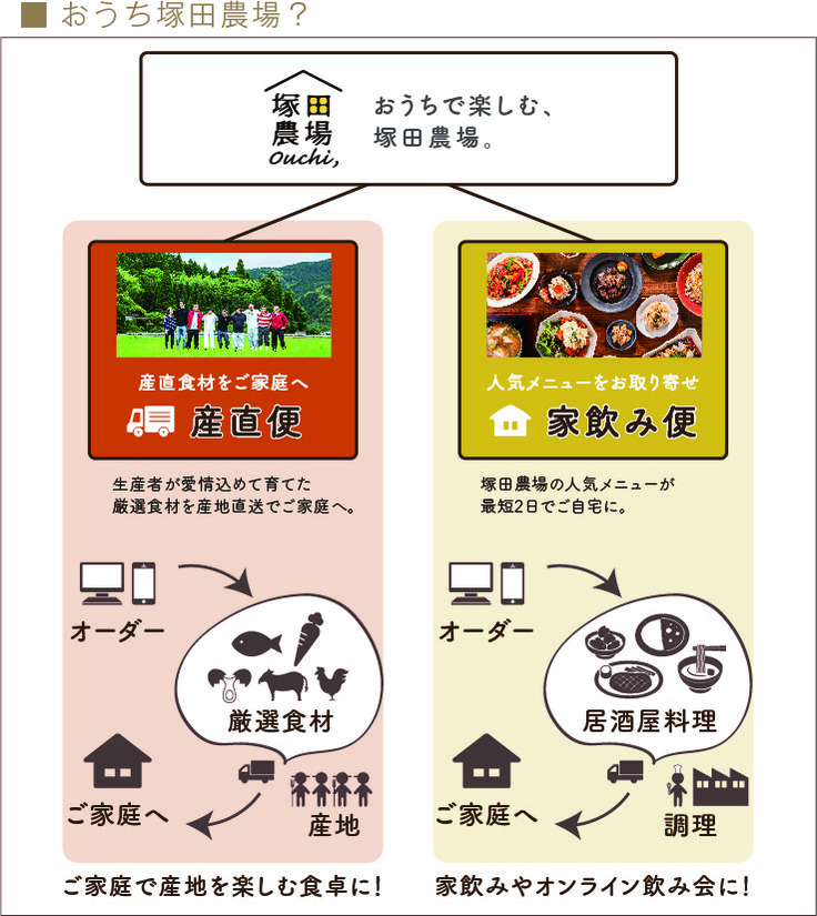 昨年4月の緊急事態宣言時、ほぼ全店舗を2カ月以上休業し、当社は窮地に陥りましたが、なんとかしてお客様に塚田農場の食材を、料理を楽しんでいただきたい!という思いで立ち上げたECサービスです。