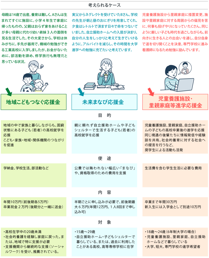皆さまからお寄せいただいたご支援は、プロジェクト掲載のための手数料を除いた全額を以下の応援金として子ども・若者に給付します(返済不要)。