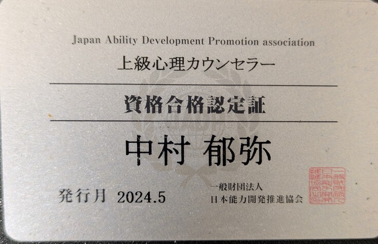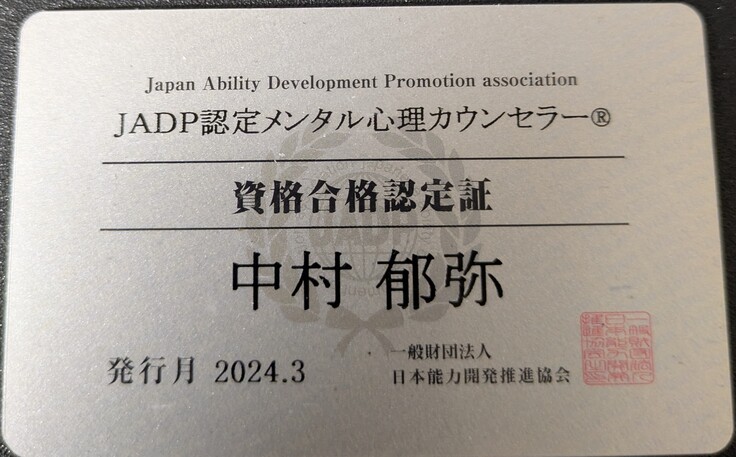 JADP認定メンタル心理カウンセラー(2024年3月合格)