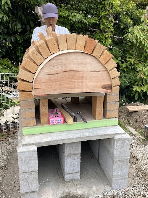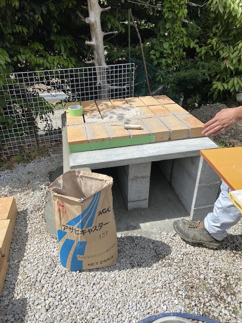 耐熱セメントを塗りながらどんどん組み上げていきます。