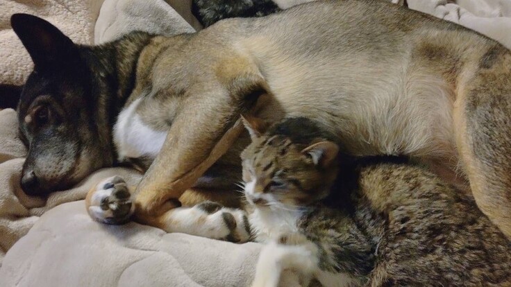 たんぽぽには猫より犬が大好きな猫がいて、いつも仲良く一緒に眠っています。