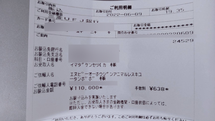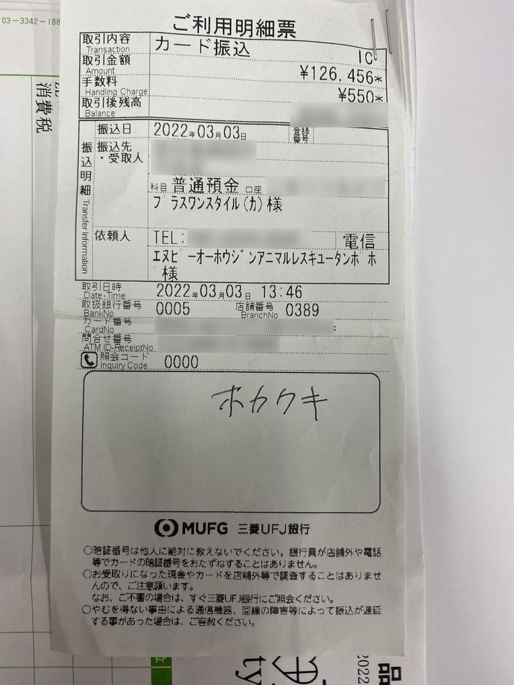 *店員さまの個人名や振り込み番号、個人情報等は、ぼかし加工を行っております。