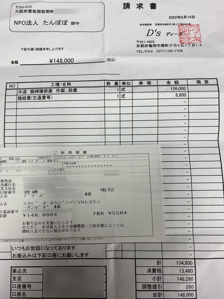 (捕獲機は購入後サイズが合わず手続き手数料を除いて